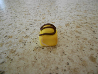 More Fimo cabochons I made last night. If you can't tell what they are, from top to bottom: Ice cream cone, yellow french fancie and fruit pastille ice lolly.